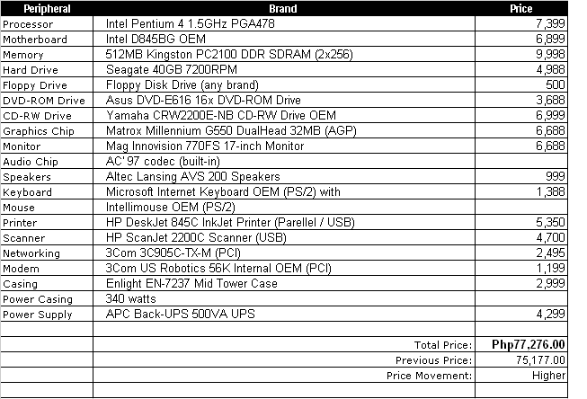 - Has a 1.5 GHz Intel Pentium 4 processor, 512 MB of DDR-RAM, 40 GB hard drive,